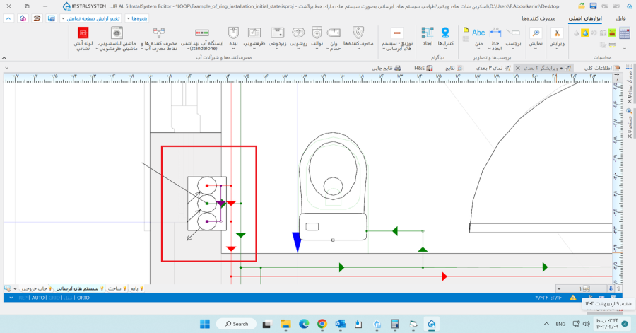 فایل مرحله اولیه در جدول پروژه جایگذاری شده است. این فایل شامل طرح گرافیکی ساختمان و سیستم آبرسانی میباشد که باید توسط یک سیستم LOOP تکمیل شود.