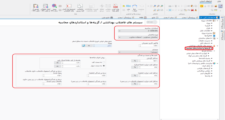 - گزینهها و استانداردهاي محاسبه: