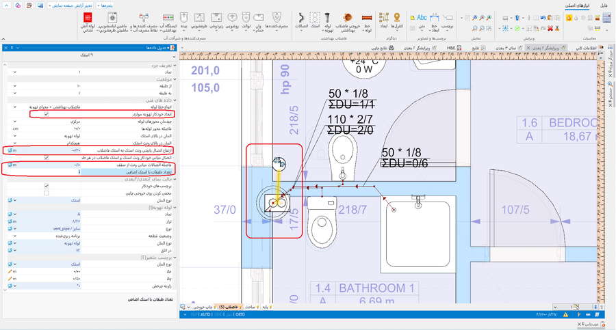 در محاسبات این قسمت نوار ابزار. انجام محاسبات در نهایت مسیر عمودی لوله ها را مشخص می کند. .