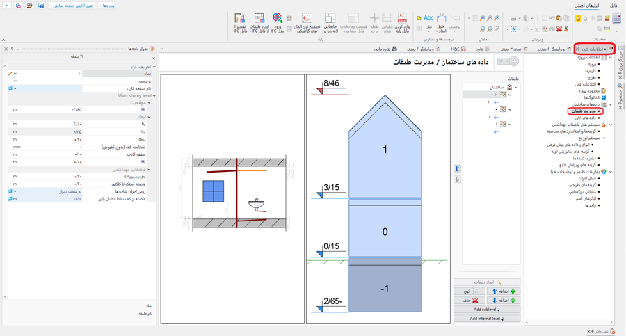 - For the selected direction define the default value of the فاصله از کف نقاط اتصال رایزر آنچه قابل به کار گیری است در تمام طبقات پروژه, وانچه که می تواند به طور مجزا در هر طبقه ویرایش شود.