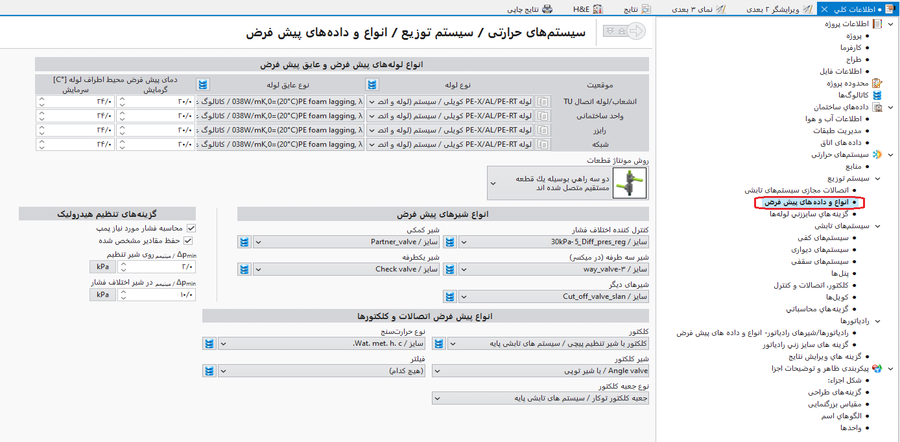 - تب سیستمهای حرارتی/سیستم توزیع/انواع و دادههای پیش فرض – افزودن انواع پیش فرض زیر :