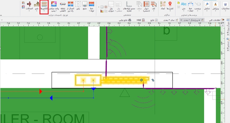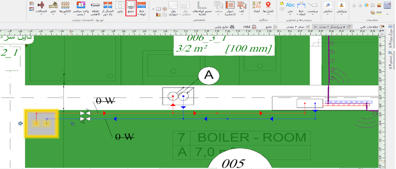 - منطقه گرمایش / سرمایش را با استفاده از مسیر لولههای تغذیه به کلکتور متصل کنید. مسیر لولههای تغذیه به شما کمک می کند تا خطوط تغذیه را بصورت خودکار ترسیم کنید.