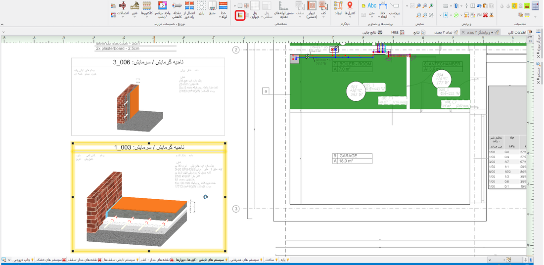 - محدوده نواحی سرمایشی/گرمایشی را ببرید و با آنچه در نقشه است مطابقت دهید، مثلا راه پله ها و وسایل بهداشتی حمام منطقه گرمایش / سرمایش