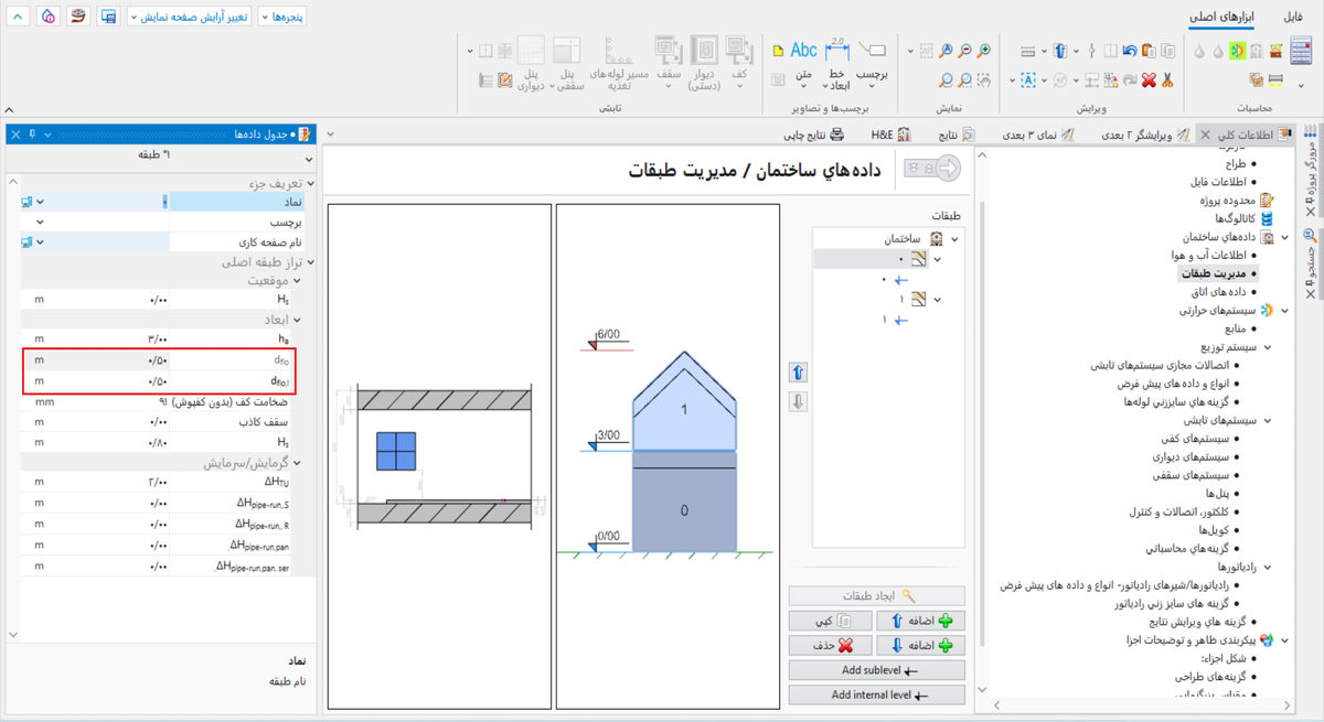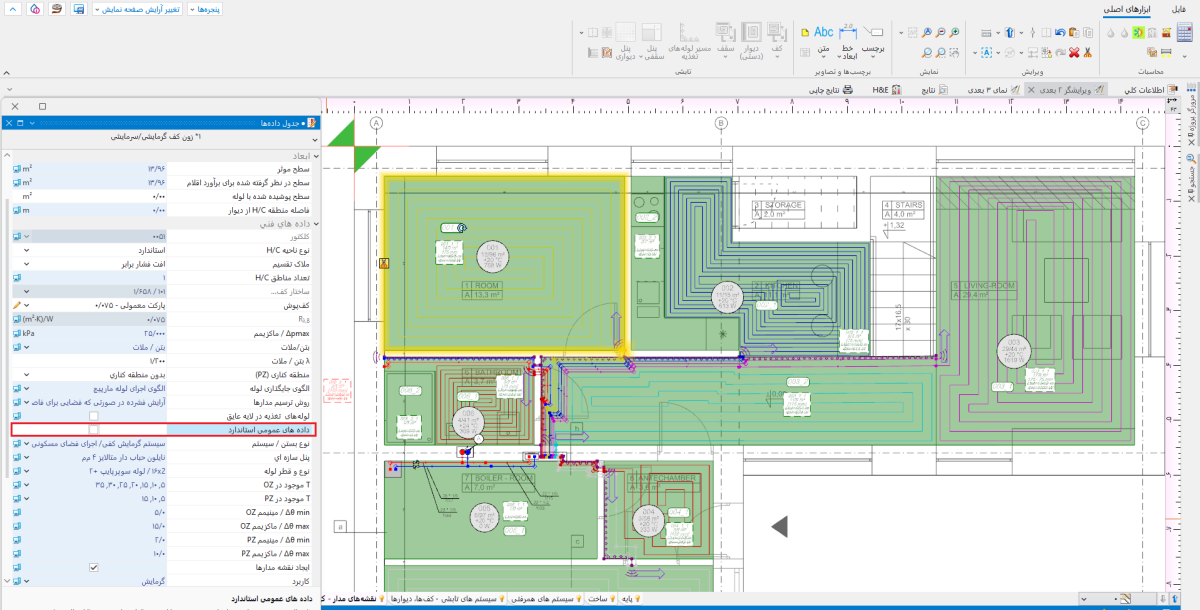 ارائه دادهها در ویرایشگر ساختار کف مناطق گرمایش/سرمایش