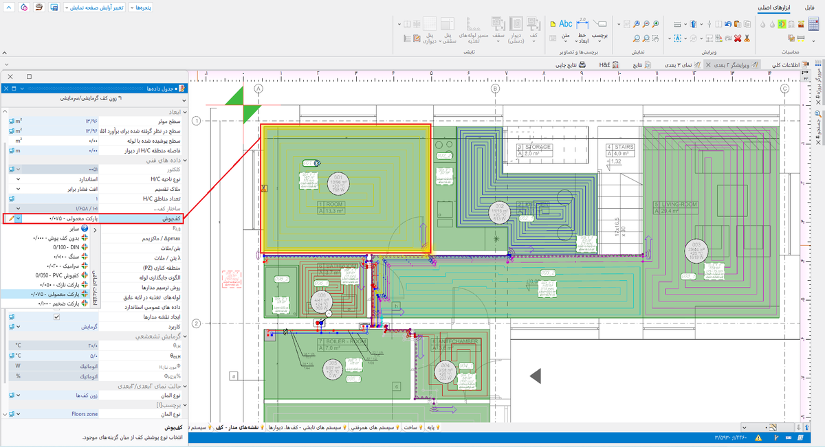 - پوشش کف را میتوانید برای هر منطقه گرمایش / سرمایش نیز تغییر دهید.