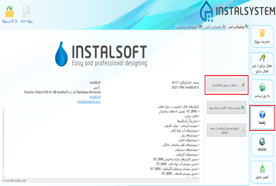 در صورت نیاز به تکمیل کار خود با نرم افزار، لطفاً از طریق ایمیل با InstalSoft تماس بگیرید.